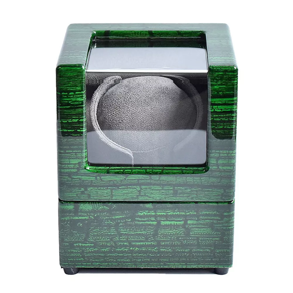 Elegantna kolekcionarska kutija za navijanje automatik ručnog sata. Spoljašnjost kutije je zelene boje, a unutrašnjost: siva. Ima pet programa, nema bravu.