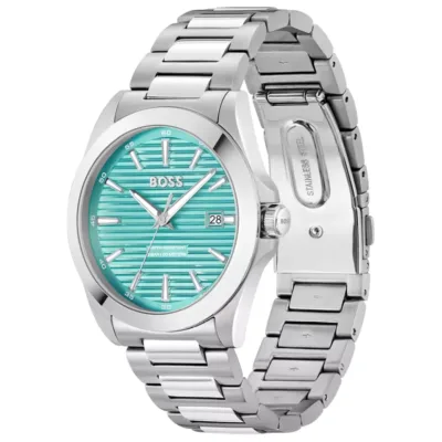 Sat Hugo Boss Strike predstavlja savršen spoj elegancije i savremenog dizajna, kreiran od nerđajućeg čelika u srebrnoj boji koji mu daje luksuzan izgled. Bogat tirkizni brojčanik u kontrastu sa srebrnim kućištem i narukvicom donosi sofisticiran stil idealan za sve prilike – poslovne sastanke, večernje izlaske ili svakodnevno nošenje. Prečnik kućišta iznosi 41 mm, a kvarcni mehanizam garantuje tačnost i pouzdanost. Sat je vodootporan do 50 metara, što ga čini otpornim na prskanje i kratkotrajno potapanje u vodi. Zatvara se preklopnom kopčom sa dugmetom, što omogućava sigurno i udobno nošenje. Ovaj elegantni model dolazi u originalnom Hugo Boss pakovanju, uz luksuznu David Cullen Jewellers poklon kesu, što ga čini savršenim izborom za poklon.