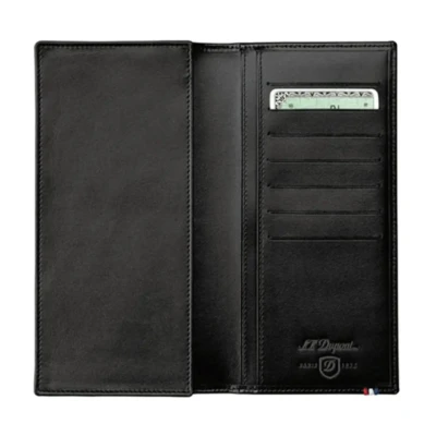 Novčanik prestižnog francuskog brenda S.T. Dupont napravljen od visokokvalitetne kože u crnoj boji čime predstavlja neizostavni deo Vašeg svakodnevnog aksesoara.Na samom modelu se nalazi istaknut logotip brenda kao potvrda o autentičnosti i kvalitetu izrade koja je poznata širom sveta.Sadrži pregradu za novčanice kao i sedam pregrada za kartice. Dimenzije novčanika: 9cm x 18cm