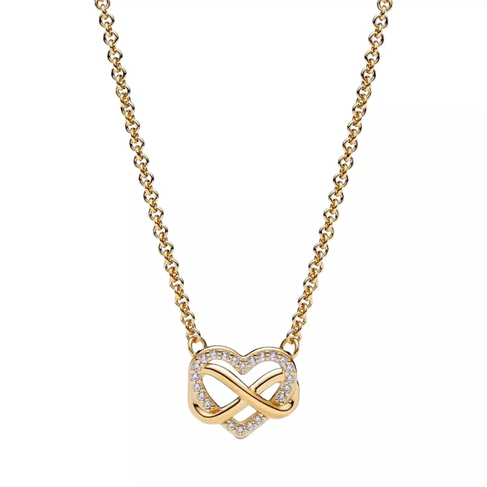 Presvučena 14-karatnim zlatom, Sparkling Infiniti Heart Collier ogrlica je svestran komad savršen za posebne prilike kao i za svakodnevno nošenje. Privezak u obliku srca, ukrašen sa 22 briljantno rezana cirkona, delikatno uokviruje asimetrični simbol beskonačnosti. Kao simbol večne ljubavi, ogrlica ima podesivi lanac sa tri prstena, što vam omoguc´ava da prilagodite njenu dužinu.