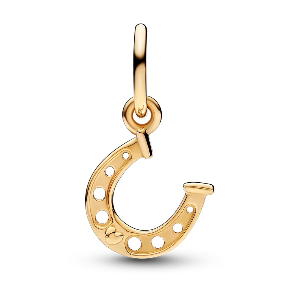 Simbol ljubavi i srec´e za vas ili vaše najbliže. Lucki Horseshoe Dangle Charm je izrađen od čvrstog 14-karatnog zlata za uzvišeni izgled klasičnog simbola. Potkovica je pričvršc´ena za kauciju sa jednog kraja i ima niz isečenih krugova i podignuto srce u sredini sa obe strane.