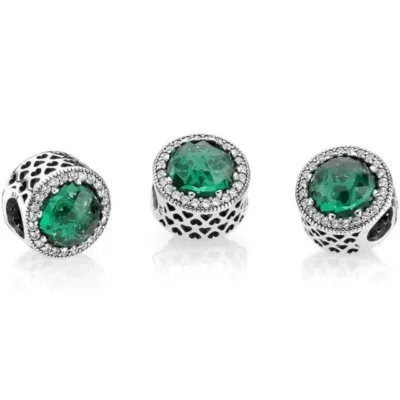 Sijajte u zelenom uz pomoć ovog predivnog prveska od srebra sa zelenim kristalom, prozirnim cirkonima i izrezbarenim srcima.