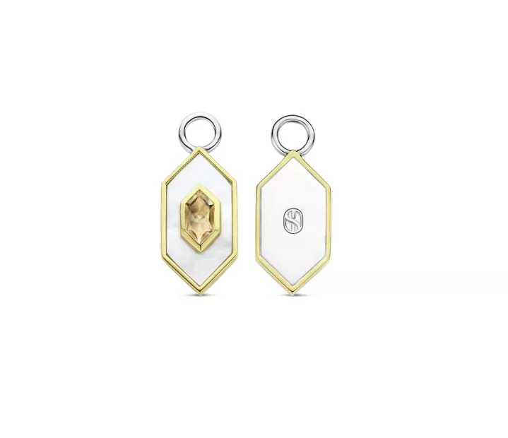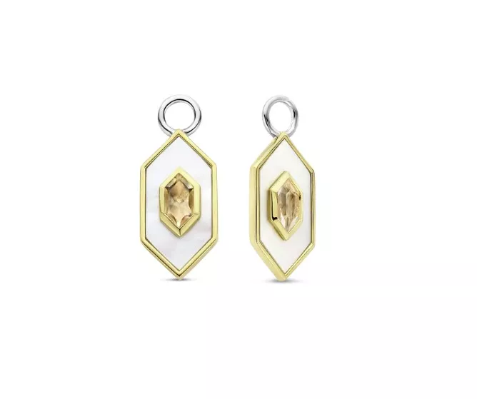 Ove TI SENTO pozlac´ene priveske za uši imaju očaravajuc´i sedef i golo ružičasto kamenje u jedinstvenim geometrijskim oblicima. Harmonična fuzija elegancije, prirodne lepote i savremenog dizajna. Ove raskošne priveske za uši su izrađene od najkvalitetnijeg srebra od 925, a zatim obložene žutim zlatom za raskošan i topao dodir. Elegantna kombinacija sedefa i golog ružičastog kamenja stvara zapanjujuc´i vizuelni kontrast koji podiže svaku odec´u, bilo danju ili noc´u. Neka ovi privesci za uši bez napora poboljšaju vaš stil, okačite ih na svoje omiljene ominđuše.Svi naši privesci za uši su bez nikla i hipoalergene.