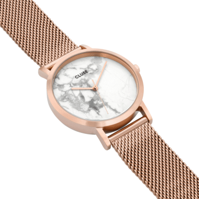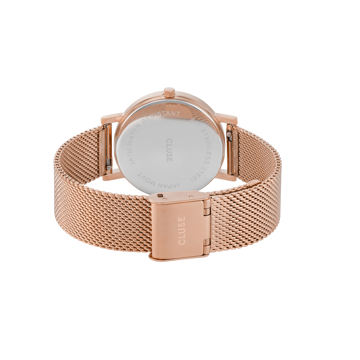 CLUSE La Roche Petite Mesh ženski ručni sat sa rose gold meš narukvicom, kucištem u rose gold boji i sedef brojčanikom.