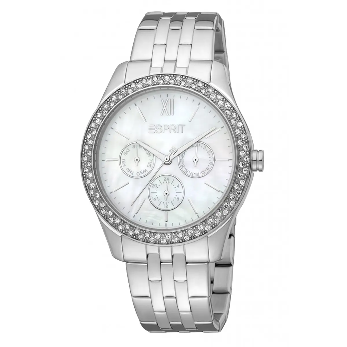 Esprit ženski sat sa biserno belim brojčanikom i srebrnom narukvicom. Sat od dodatnih funkicija poseduje dane u nedelji,datum kao i doba dana.