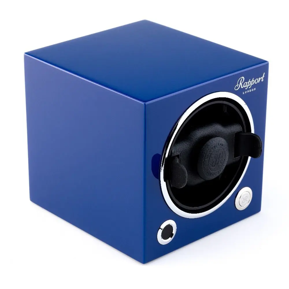 Kutija navijač za automatik satove brenda Rapport London u plavoj boji. Dimenzije kutije su 120mm x 120mm x 146mm. Predstavlja pravi izbor za kolekcionare satova sa automatik mehanizmom.