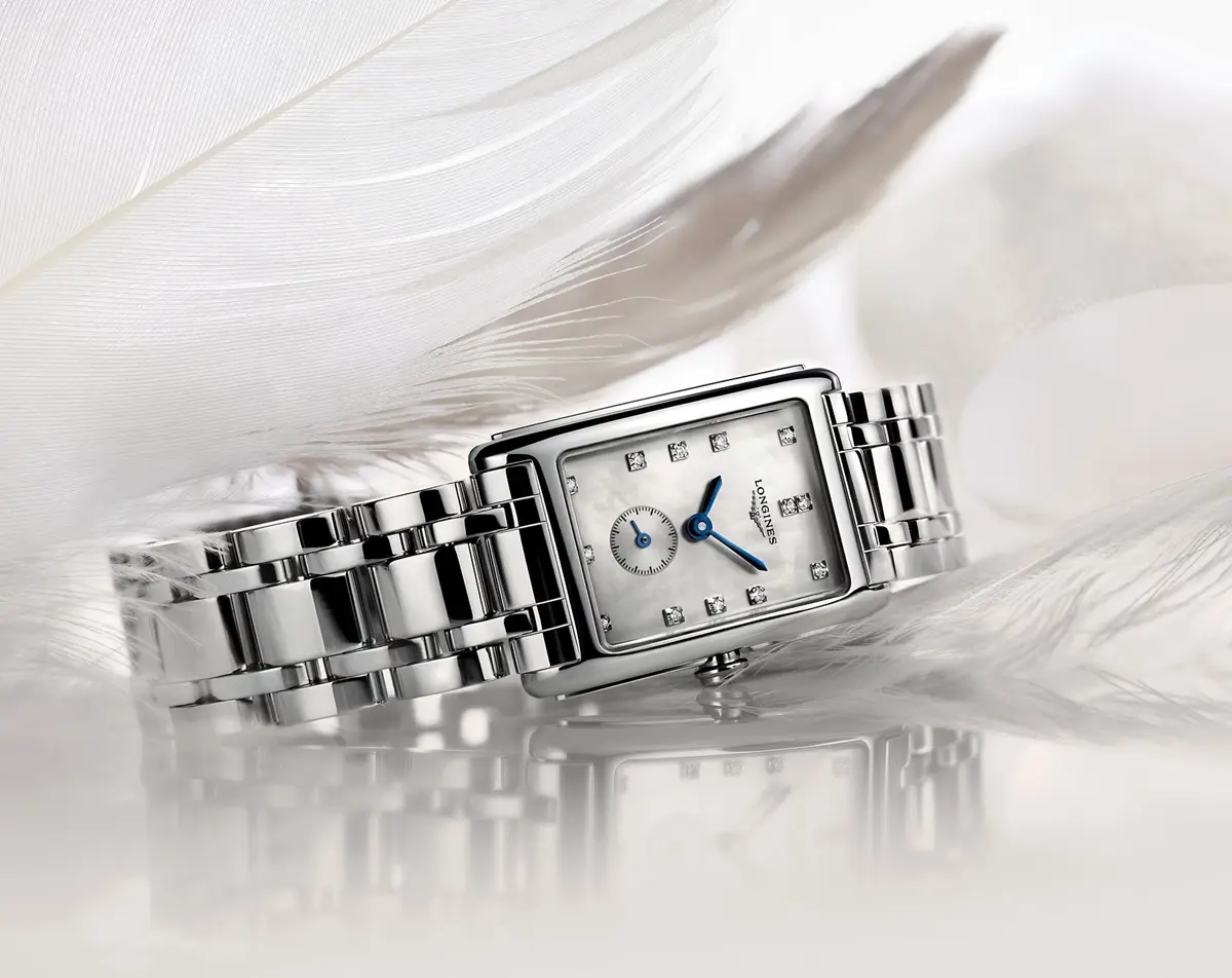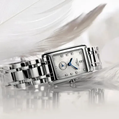 Longines Dolce Vita ženski ručni sat je sinonim za lepotu i šarm italijanskog dizajna. Kombinacija geometrijskog oblika sa sedefastim MOP brojčanikom čije savršenstvo dizajna upotpunjuje 13 Top Wesselton dijamanata na indeksim. Predstavljen u sofisticiranom kućištu pravougaonog oblika dimenzija 32×20 mm od visokokvalitetnog čelika u koje je smešten pouzdani švajcarski kvarcni mehanizam kalibra L178 izuzetne preciznosti sa EOL funkcijom. Savršenu preglednost garantuje safir kristal staklo otporno na ogrebotine sa antirefleksnim premazom. Sekundara u podbrojčaniku na broji 6 obezbedjuje optimalnu funkcionalnost sata dok luksuzna narukvica od čelika daje završnu notu prefinjenosti i luksuza.