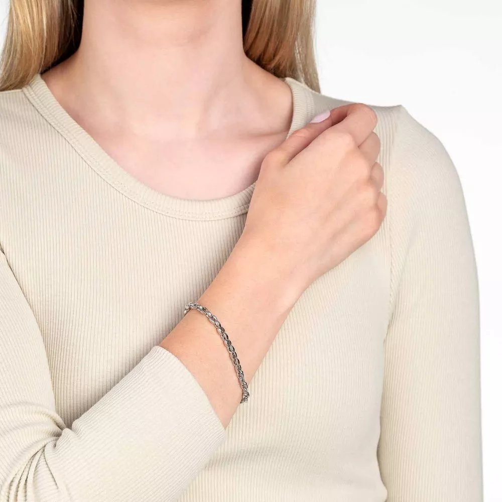 Leonardo narukvica ima izgled masivnih ovalnih karika lanca koji očarava. Ova narukvica je dekorativni solista na zglobu ili ima mogućnost produžetka u odgovarajuc´u ogrlicu.