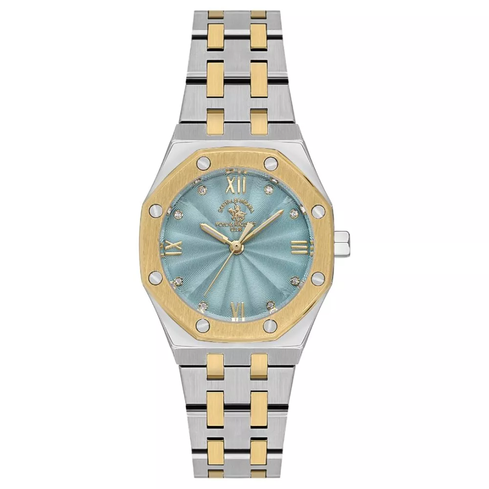 Ovaj prefinjeni model iz kolekcije Luxury odlikuje se stilskim dizajnom i bezvremenskom elegancijom. Sat ima analogni brojčanik u tirkiznoj boji, ukrašen diskretnim kristalima na odabranim indeksima, koji mu pružaju luksuzan izgled. Staklo je izrađeno od mineralnog kristala, poznatog po svojoj otpornosti, dok su kućište i narukvica izrađeni od visokokvalitetnog nerđajućeg čelika, čime se osigurava dugotrajnost i izdržljivost. Prečnik kućišta je 30 mm, dok pouzdani kvarcni mehanizam sa kalibrom 2035 garantuje preciznost. Vodootpornost od 5 ATM omogućava zaštitu od laganih prskanja i tuširanja, ali se ne preporučuje intenzivno kvašenje. Ovaj sat je savršen spoj funkcionalnosti i stila, što ga čini idealnim za svaku priliku, bilo da se nosi svakodnevno ili za specijalne događaje.