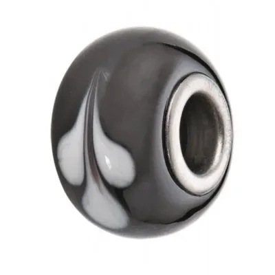 Privezak-perla od kristala crne boje sa belim detaljima.