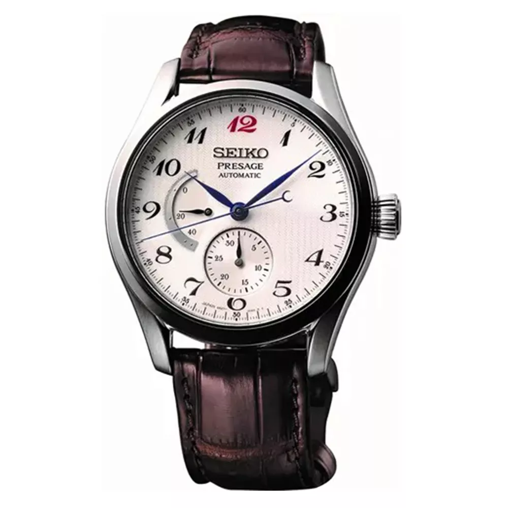 Elegantan muški sat iz prestižne linije mehaničke kolekcije Presage. Urađen je po uzoru na prvi Seikov ručni sat "Laurel" iz 1913.godine. Preglednog je belog brojčanika sa upečatljivim crvenim brojem 12,plavim kazaljkama i podbrojčanicima. Poseduje kvalitetan,ručno sklapan mehanizam sa automatskim i mogućnošću ručnog navijanja,calibra 6R27 od 204 dela,sa autonomijom rada do 45 sati kada je potpuno navijen. Smešten je u čeličnom kućištu,koje zatvara dvostruko zakrivljeno safir kristal staklo sa antirefleksnim premazom. Podržava ga visokokvalitetna udobna narukvica od krokodilske kože sa sigurnosnom kopčom. Sat je namenjen muškarcima koji znaju da prepoznaju prave vrednosti koje traju generacijama.